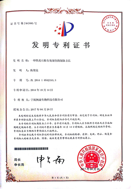 枫康集团与浙江大学签订铁皮石斛技术合作项目合同,通过对东海珠山野生种源的基因图谱分析和种苗培育,研发出优于普通野生铁皮石斛的原始种源,即“东海石斛珠山1号种源”。