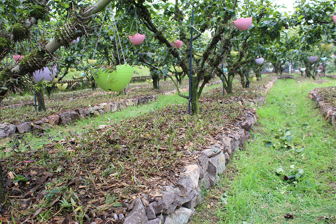 仿野生种植区面积达 100 余亩,其种植特点是利用原生树为基础,让两年生的穴盆苗附生在树干表皮上。枫康仿野生项目被列入国家星火计划项目,完全模拟野生生存环境下生长的铁皮石斛,经历了大自然阳光雨露的洗礼,更加完美的呈现了其独特的营养价值,同时也为林下经济提供了一个具有相当可观经济价值的创新模式。
