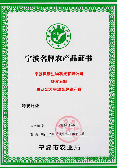 宁波名牌农产品证书