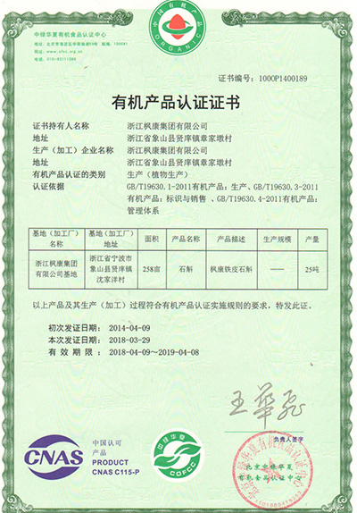 有机产品认证书2018