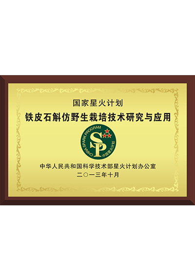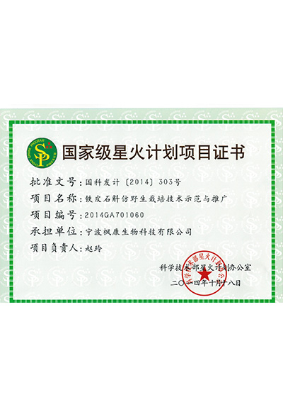 国家星火计划项目证书