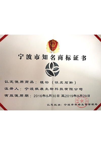 宁波市知名商标证书