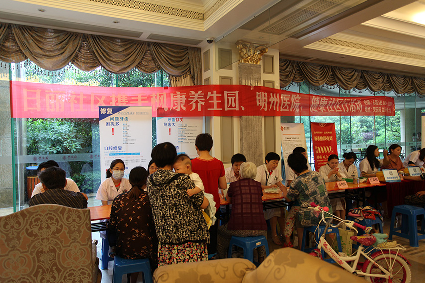 2016年5月24日,枫康携手明州医院在鄞州区洞桥镇开展关爱义诊活动。本次义诊由洞桥镇政府和洞桥镇卫生院组织,包含儿科、妇科、内分泌科、口腔科、眼科、骨科等众多科目,吸引了洞桥镇居民的积极参与,场面火爆,收到好评如潮。
